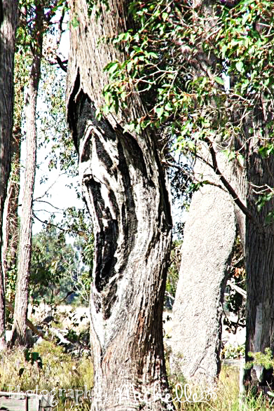 I had to cheat and dig this one up! It's from our Honeymoon in Western Australia, we were at the Margaret River Chocolate Factory drinking THE best hot chocolate I've ever tasted (big tall glass, 1/3 filled with choc chips then boiling milk poured on top *drool*) when we spotted this tree, it totally looks like the killer from Scream, right?? LOL!